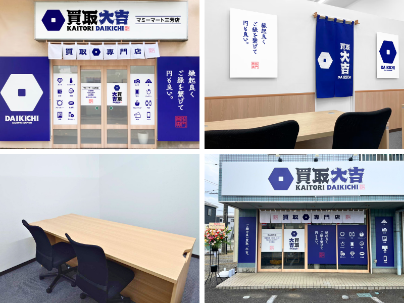現在、埼玉県内に「買取大吉」を2店舗(マミーマート三芳店・狭山笹井店)展開しております。